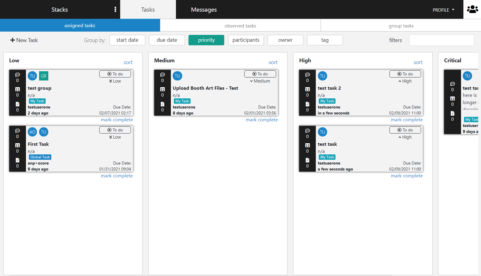 Users can search for messages by key words in both Stacks and Tasks. With simple searching, you can always keep track of the communication across the organization.