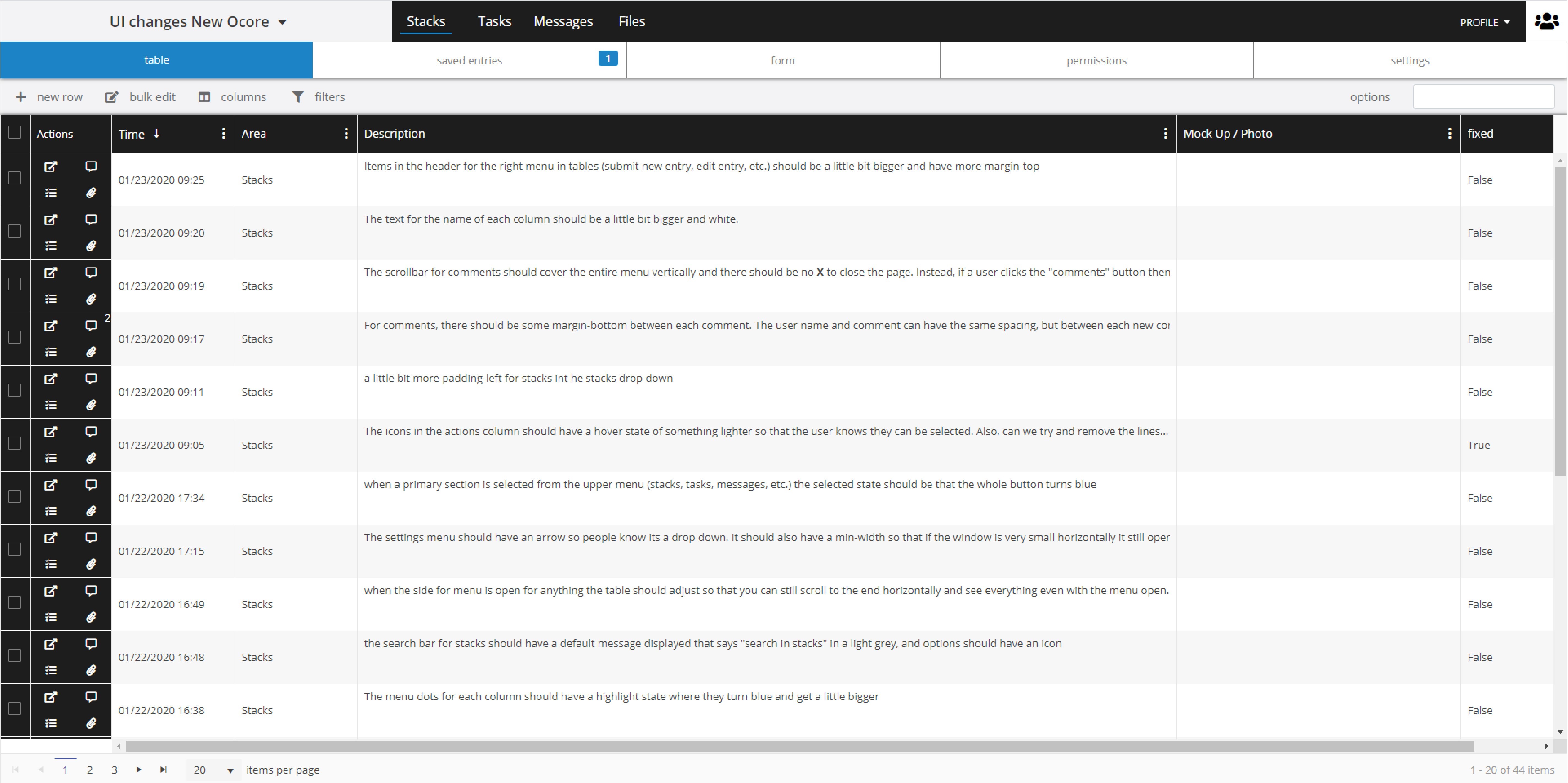 Ocore's tasks can be used in conjunction with Stacks to connect task-based workflow with information storage. Tasks can be created automatically when specific conditions you create are triggered in Stack entries. Each task comes with built in features like file attachment, stack linking, and commenting.